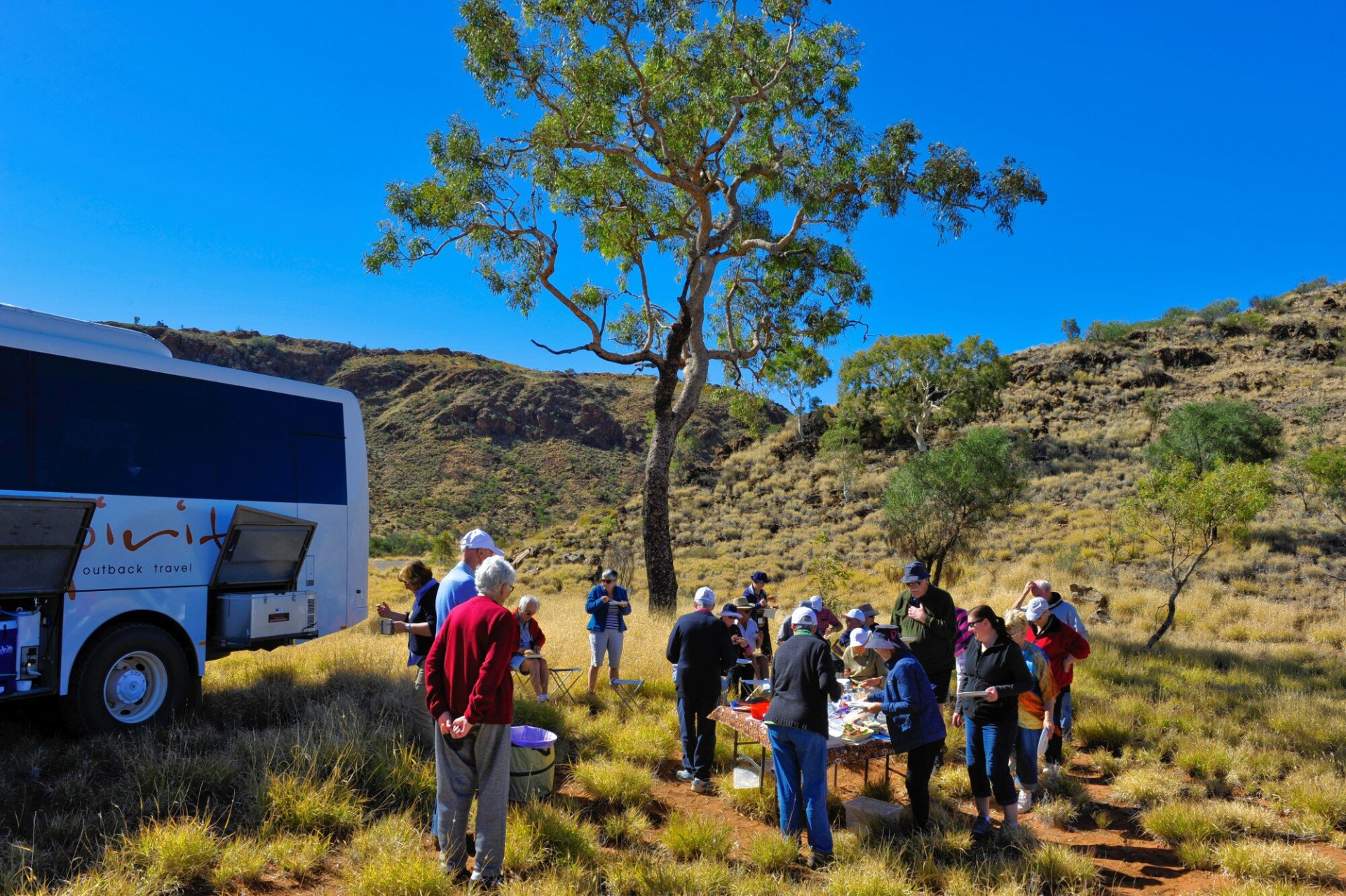After a night of fine dining and comfort aboard The Ghan, wake to a breathtaking outback sunrise at remote Marla. Enjoy breakfast, then continue to Alice Springs, where a new journey begins. Meet the Outback Spirit crew for the eight-day Red Centre Explorer tour. Check in to your Alice Springs hotel for a two-night stay, with welcome drinks, a tour briefing, and dinner at the hotel.